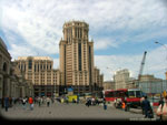 | Из метро я вышел на Павелецкой, где надо было заглянуть в такую замечательную башню. Как мне перед этим обьяснили по карте, оттуда отсилы двадцать минут пешком до Кремля. Может и так, если идти в правильном направлении, у меня вышло по-другому: повернул я, естественно, не туда и какое-то время брел по неизвестной улице с интересом разглядывая большие московские дома. Один из них заинтересовал меня особо, я подошел и прочитал "Министерство внутренних дел Российской Федерации". Кришна, прекрати уже подавать мне знаки! Рядом с МВД в пределах метров ста стоят маленькая церквушка и памятник Ленину. Смотрится весьма контрастно. |  |